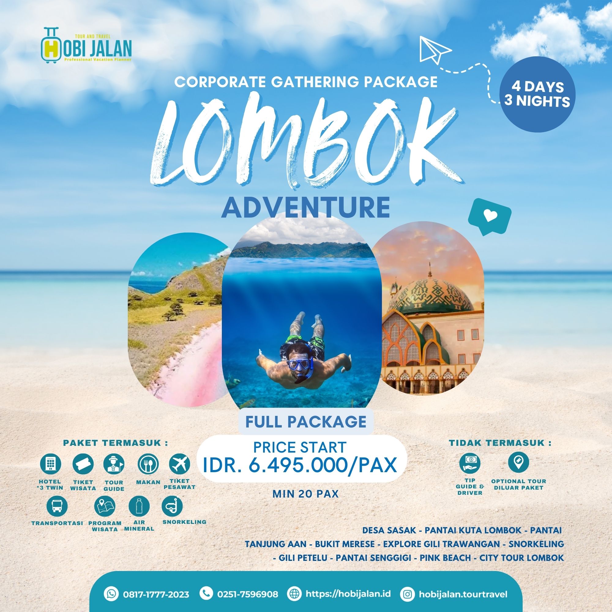 Desa Sasak, Desa Tenun Sukarara, Pantai Kuta Lombok, Bukit Merese, Tanjung Aan, Bukit Malimbu, Gili Trawangan, Pantai Senggigi, Gili Petelu, Gili Gambir, Pink Beach, City Tour Mataram, Islamic Centre, Wisata Belanja Oleh-Oleh, Gunung Rinjani (view), Budaya Sasak, Kuliner Lombok, Pantai Senggigi Sunset, Snorkeling Gili Trawangan, Snorkeling Gili Petelu