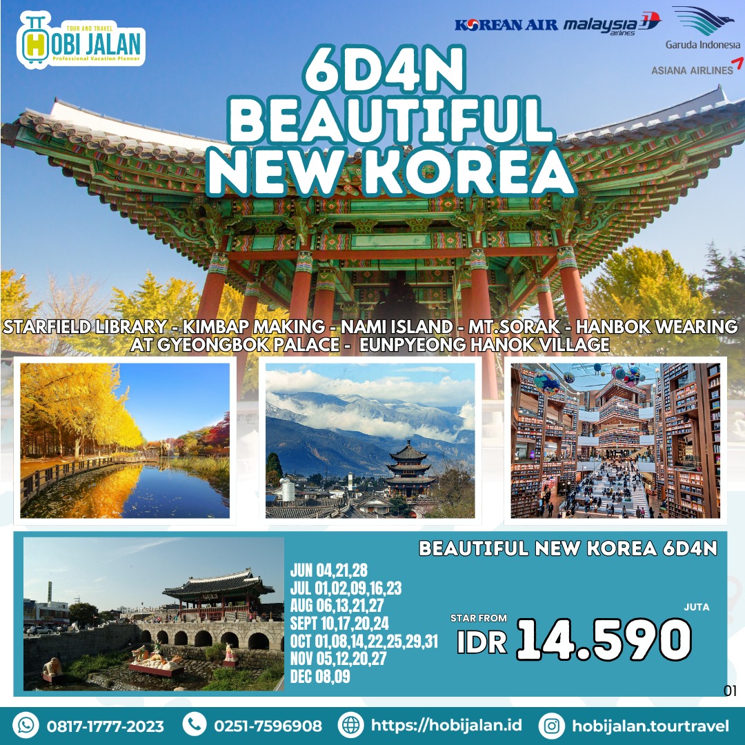 Nami Island, Mt. Sorak, Gwongeumseong Fortress Hill, Great Bronze Buddha Statue, Sinheungsa Temple, Pocheon Bidulginang Falls, Ski Resort (seasonal), Kimbap Making Experience, Seaweed Factory, Cheonggyecheon Stream, Dongdaemun Shopping, Eunpyeong Hanok Village, Itaewon Mosque, Itaewon Street, COEX Mall, Starfield Library, Gangnam Style Statue, Hongdae Youth Avenue, Gyeongbok Palace Hanbok Wearing, N Seoul Tower & Love Lock, Myeongdong Street