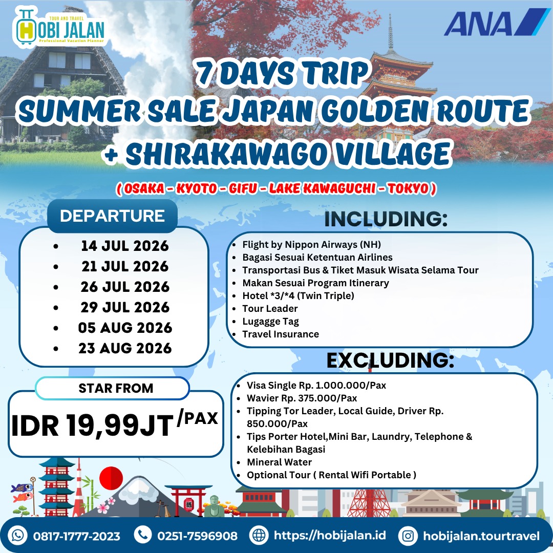 Departure : 14 Jul, 21 Jul, 26 Jul, 29 Jul, 05 Agu, 23 Agu 2026